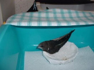Mit 3 - 6 Heimchen wird ein Mauersegler fast jede Stunde gefüttert. Vom Schlüpfen bis zum Flügge werden durchläuft er eine 40- bis 45-tägige Nestlingszeit: